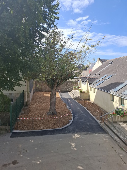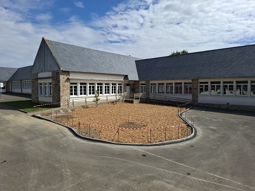 · Cour primaire de l’école d’Arvor : transformation en espace végétalisé avec décroutage de l’enrobé, pose de paillage bois, plantation prévue à l’automne, installation de mobilier et de jeux (budget : 30 000 € TTC). Ce réaménagement offrira un environnement plus agréable et propice aux activités des enfants.